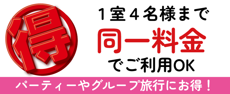 閑静な空間でゆっくりおくつろぎいただけます。お子様連れファミリー利用にも最適!1室4名様まで同一料金でご利用OKなのも魅力!