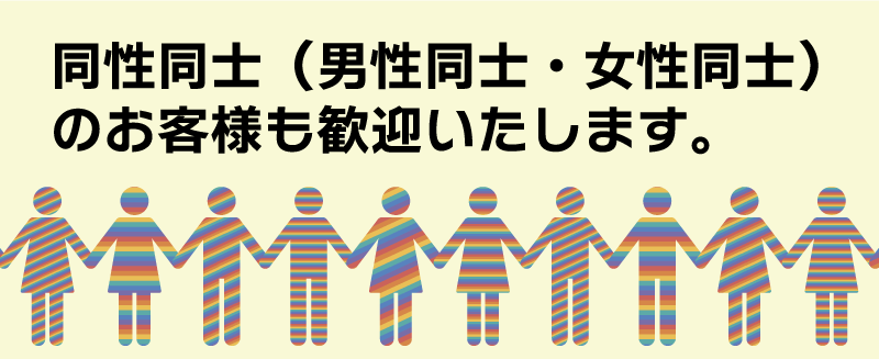 同性同士(男性同士・女性同士)でもご利用OKのLGBTフレンドリーホテルです。